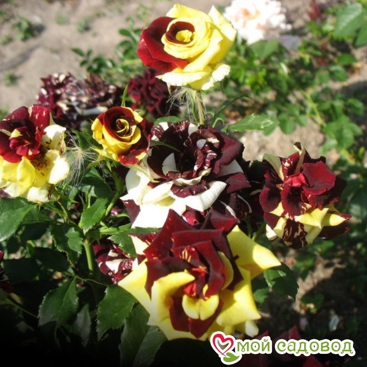 Роза Сим Салабим (Симсалабим, Simsalabim) – результат кропотливого селекционного процесса немецких инженеров-цветоводов агрохолдинга Kordes. Цветок относится к группе чайно-гибридных сортов и был получен в результате соединения ремонтантного гибрида и чайной розы. Гибридный сорт относится к компактным растениям и состоит из прямых отростков. Средняя высота взрослого растения находится в диапазоне от 70 см до 90 см, а диаметр кроны не превышает 60 см. Насыщенно-зеленые листовые пластины имеют средний размер и мелкозубчатые края. Форма цветков напоминает бокал, а их диаметр достигает 10 см. Лепестки насыщенно-лимонных цветов покрыты темно-бордовыми бархатными полосами, вкраплениями и точками. Основная цветовая гамма – желтая, красная. Оттенок бутонов яркий, насыщенный и очень пестрый. В одном цветке формируется около 25 махровых лепестков, раскрытие которых спиралевидное. Цветы благоухают легким, нежным и ненавязчивым ароматом. На одном стебле может сформироваться до 15 цветов, собранных в соцветия. Уход за розами заключается в систематическом рыхлении грунта, удалении сорняков, профилактике заболеваний, подкормке и обрезке. Подкормку роз проводят сезонно: азотом – весной, фосфором и калием – летом. Несмотря на засухоустойчивость, полив роз – процедура обязательная, особенно в жаркие и засушливые периоды. Поливают растения не холодной водой из расчета на куст 15-20 л воды, в сухую и теплую погоду – два раза в неделю. К концу лета полив сокращается и прекращается вовсе с наступлением сентября. В первый год допускать раннего цветения молодых растений не следует. Вплоть до начала августа бутоны роз с кустов удаляют. В августе оставляют по 1-2 цветка на каждом побеге и не срезают их, чтобы осенью завязались плоды. Побеги розы в таком случае лучше вызревают, хорошо перезимовывают и на будущий год обильно цветут. 2-летние саженцы ЗКС в мягкой упаковке. Перед упаковкой роз мы проводим обработку корней гидрогелем и пакуем их в обогащенный микроэлементами почвенный субстрат, что обеспечивает жизнеспособность саженцев по пути к вам. До посадки хранить при t 0+2°С. В нашем интернет-магазине вы сможете купить Чайно-гибридные розы Так же возможно вас заинтересуют Роза Версилия и Роза Геральдина
